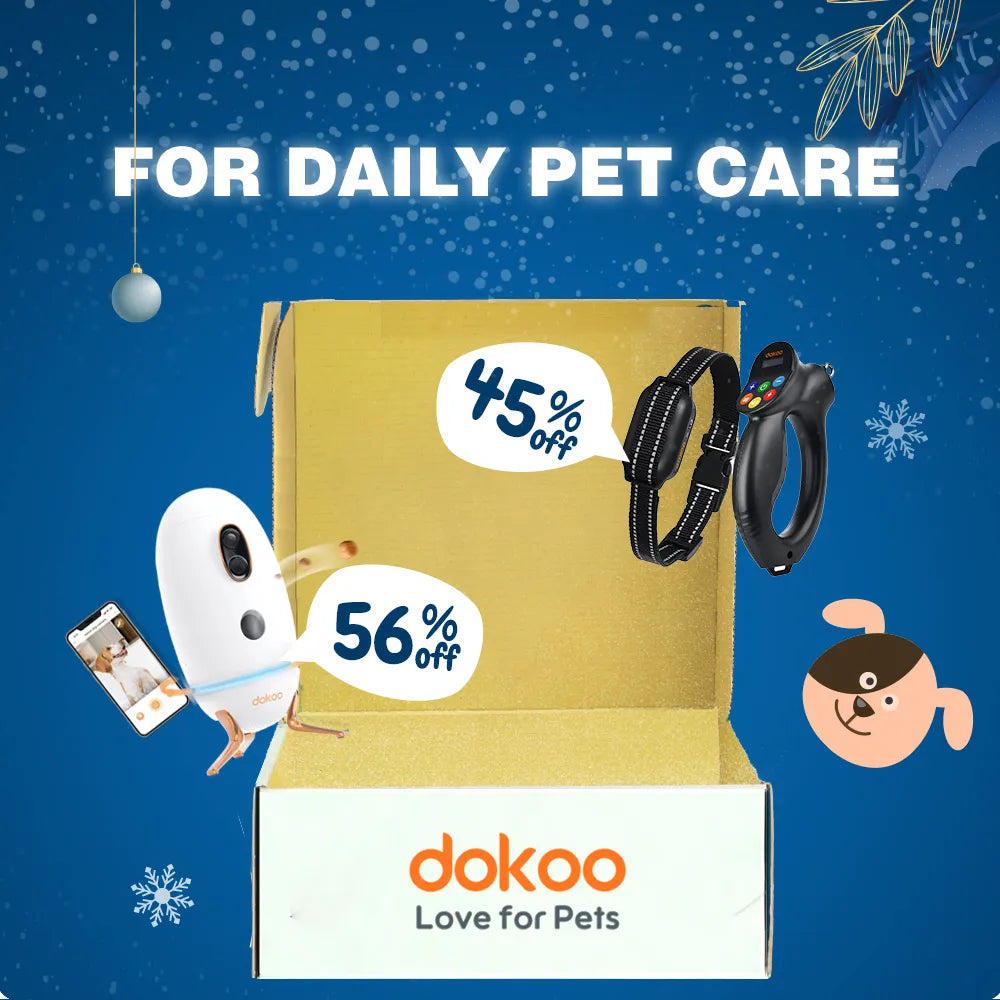 Keep your pets happy and well-behaved while focusing on family. The dokoo pet camera lets you monitor and toss treats, while the dokoo training collar ensures safe and effective control.